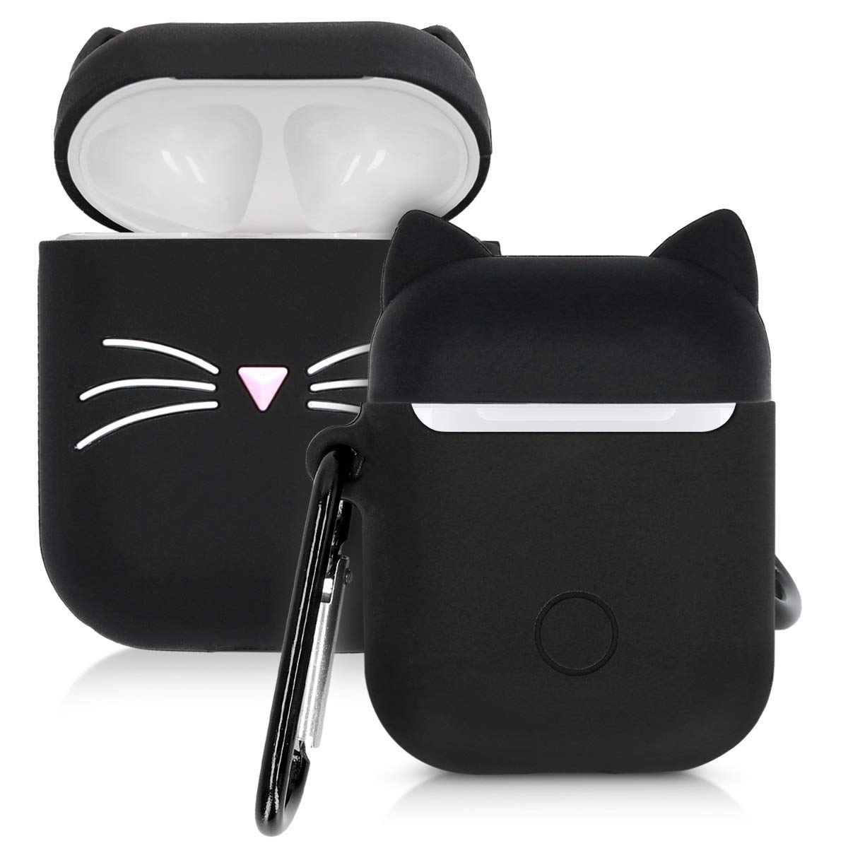kwmobile Housse écouteurs Apple AirPods - Coque Apple AirPods - Chat - Noir-Blanc