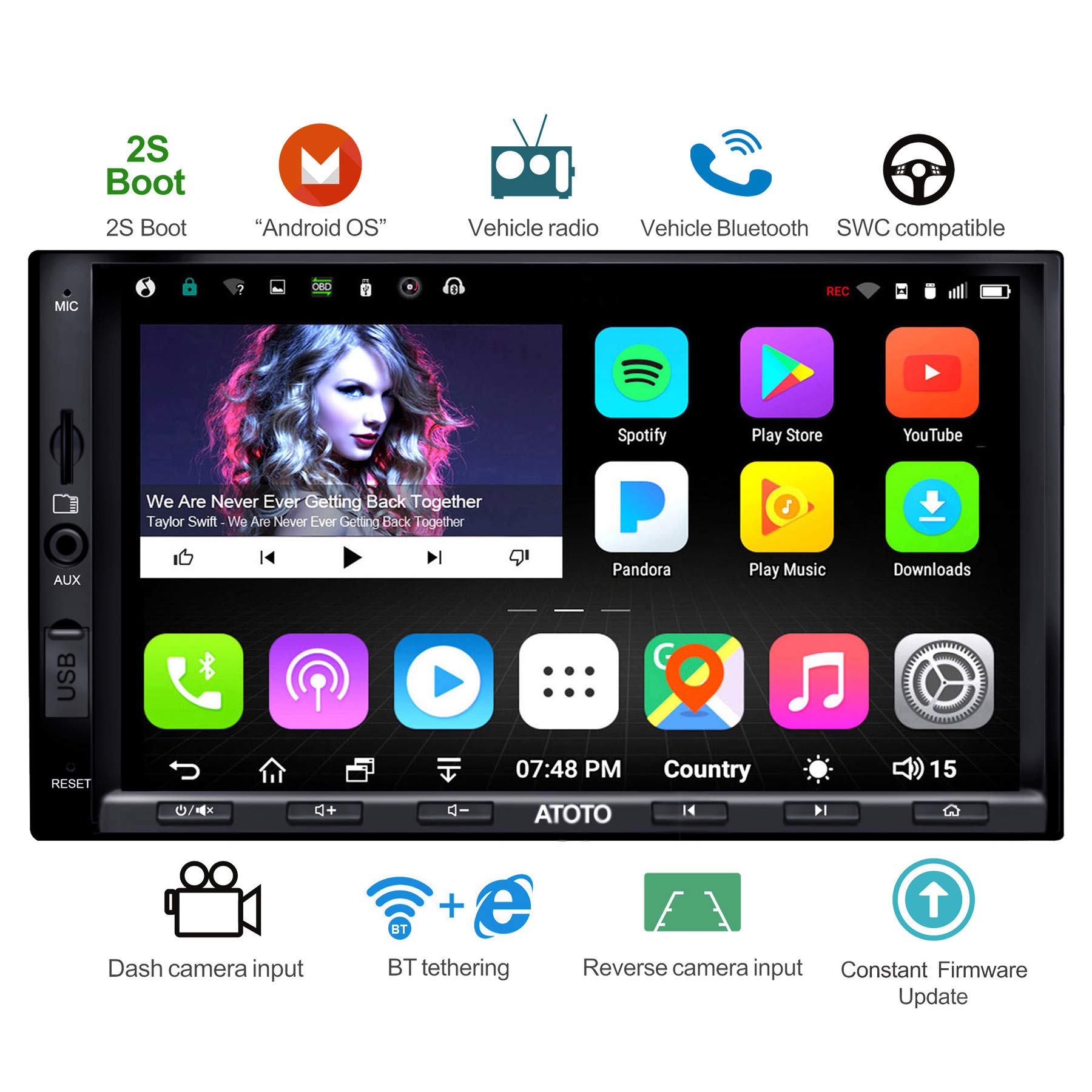 ATOTO A6 Double din Android de Navigation de Voiture stéréo avec Double Bluetooth - Standard A6Y2710SB 1G / 16G Radio multimédia de Voiture, WiFi/BT Internet Tethering, Soutien 256G SD et Plus